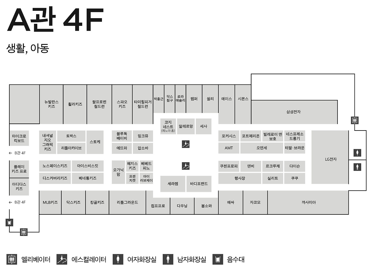 | 4F | 국내 아동 | 닥스 키즈 | 041-640-5466 |