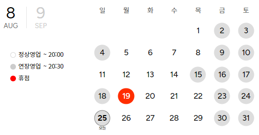 연장 영업시간 10:30 ~ 20:30