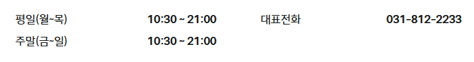 평일(월-목) 영업시간 10:30 ~ 21:00